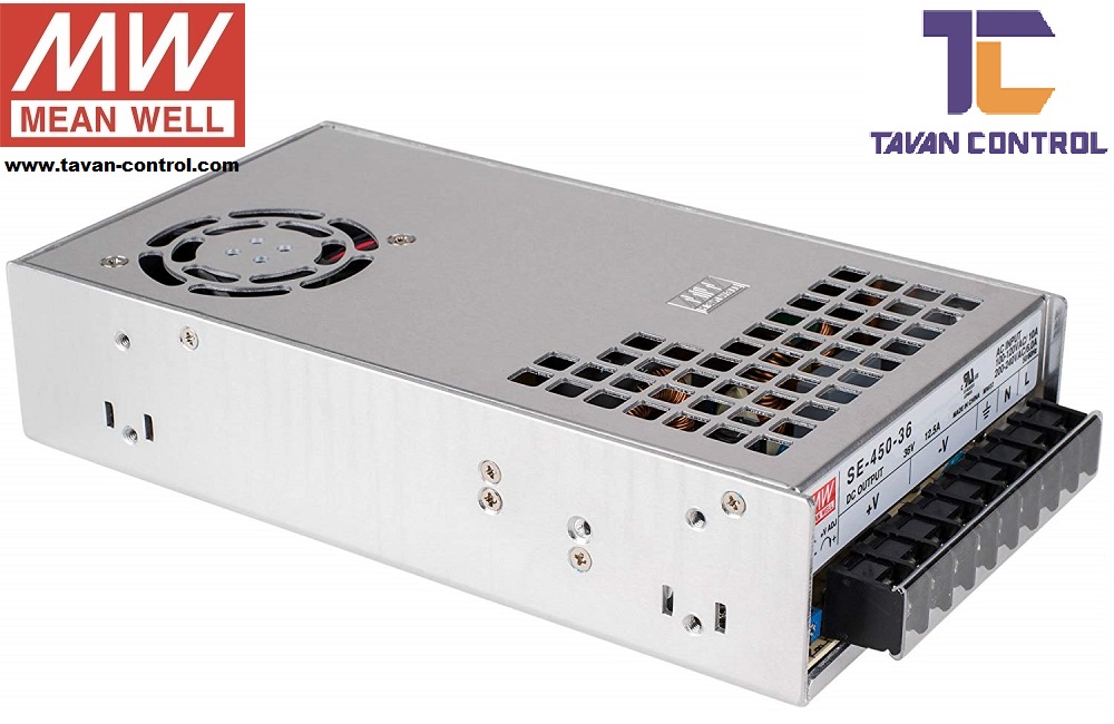 منبع تغذیه سوئیچینگ مینول سری  SE-450 یک منبع تغذیه کف خواب AC / DC از نوع تک خروجی با توان W 450 است